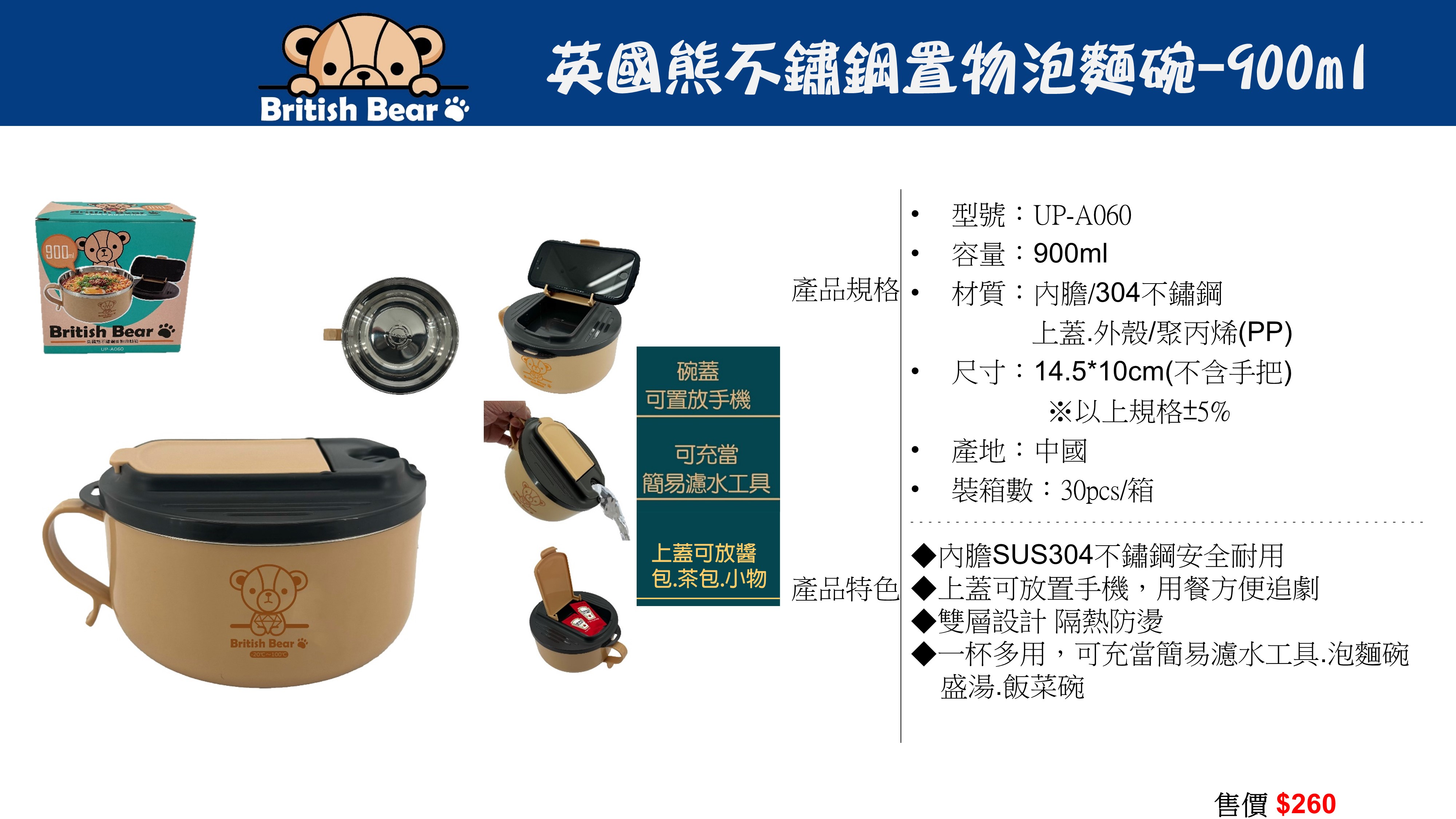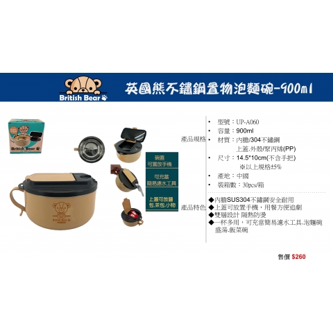 英國熊不鏽鋼置物泡麵碗