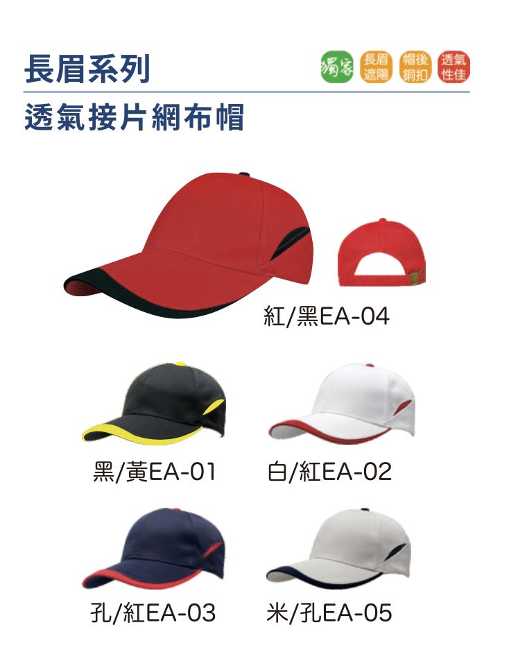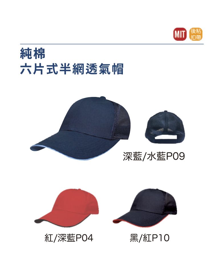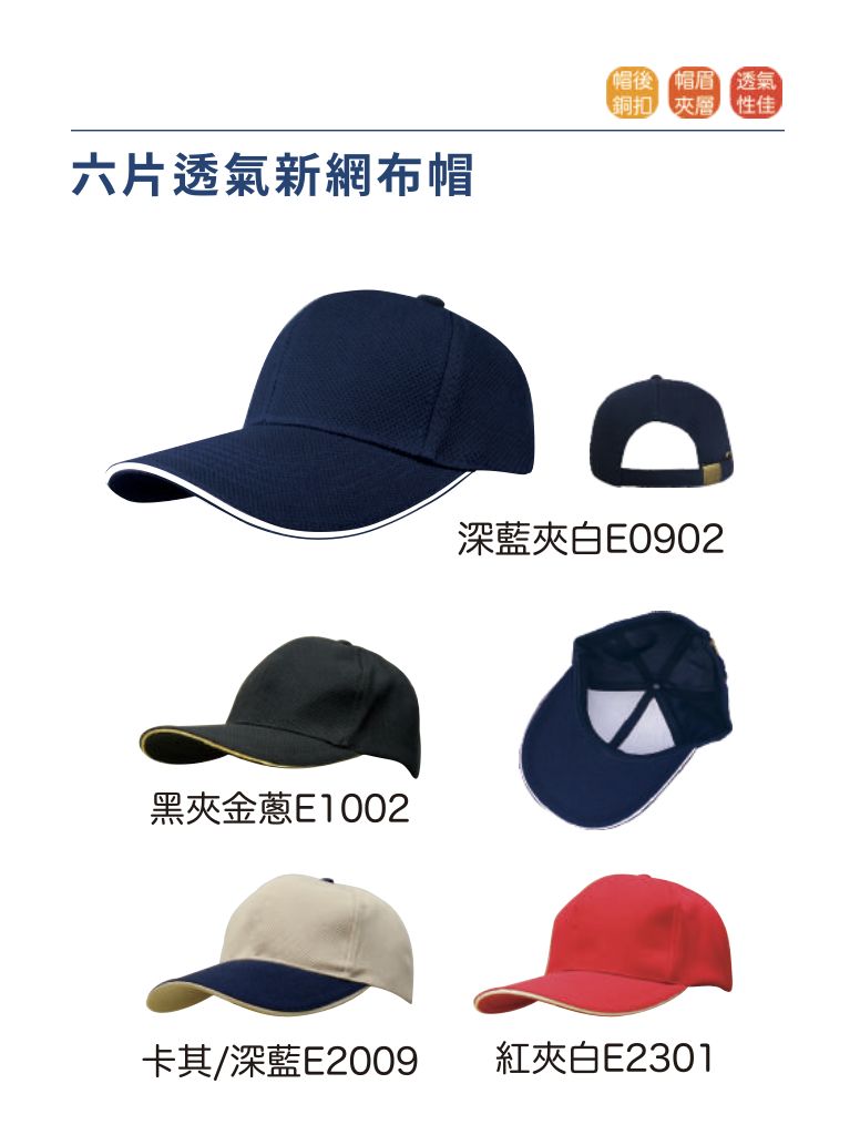 台灣製六片透氣新網布帽-1