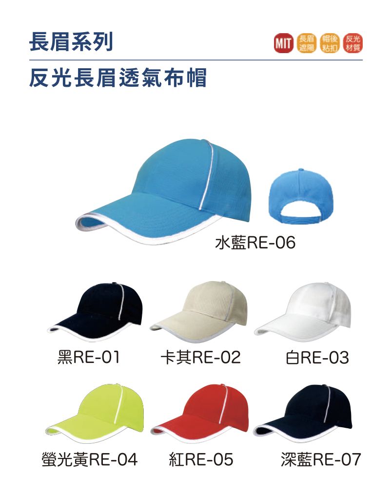 台灣製 反光長眉透氣長帽