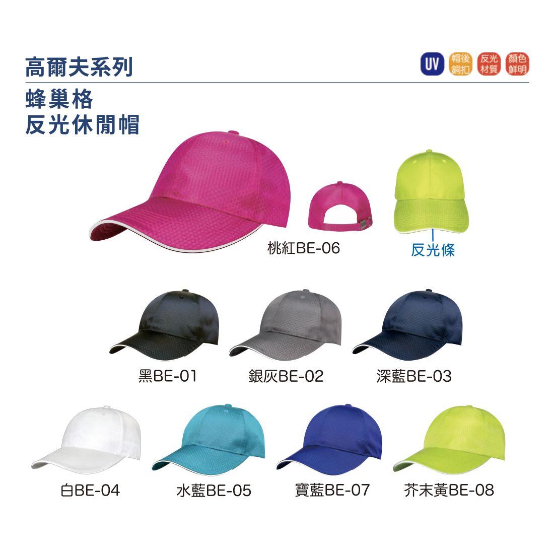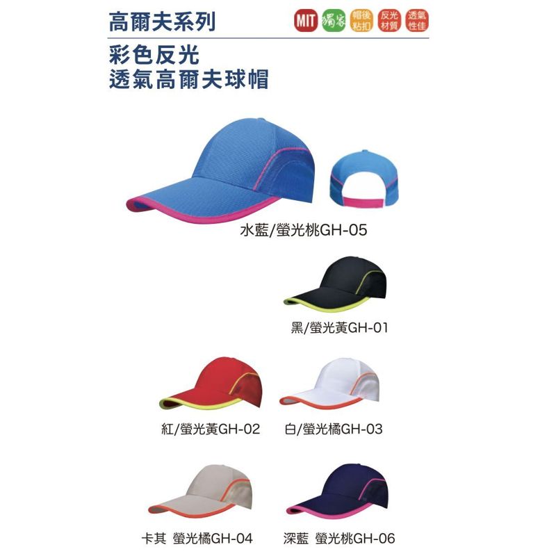 台灣製 彩色反光透氣高爾夫球帽