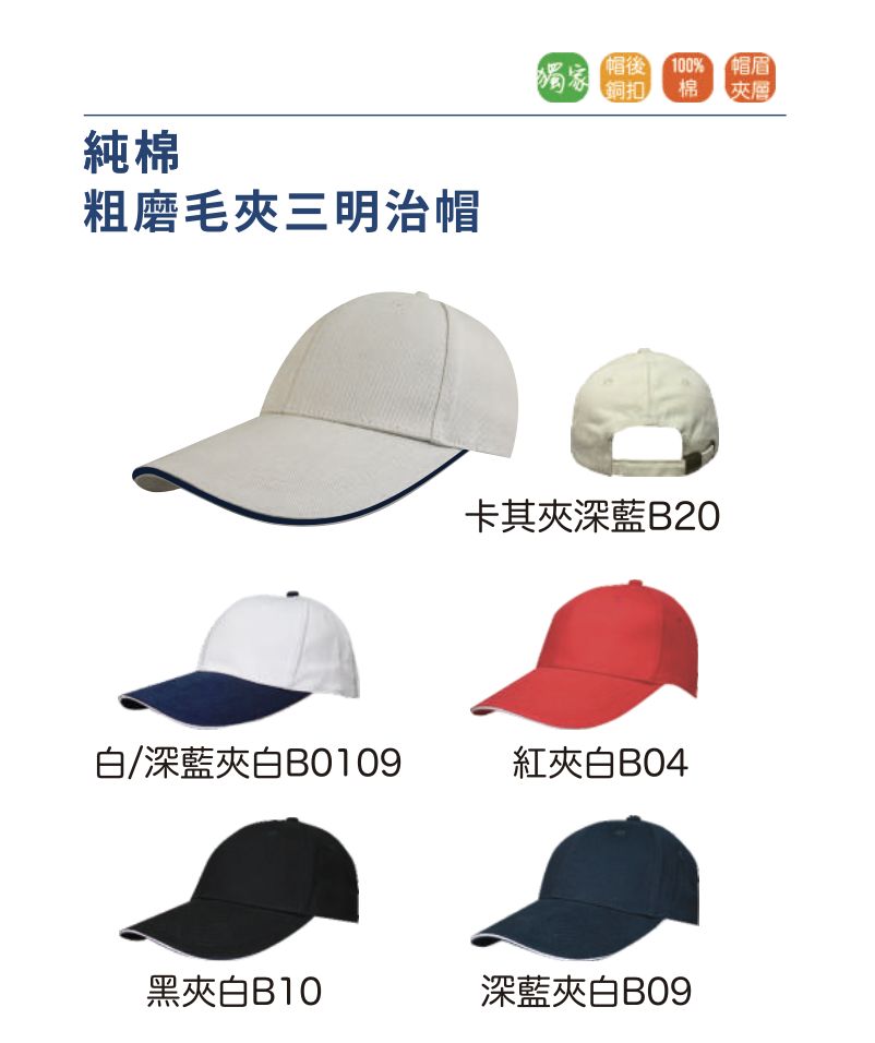 台灣製 粗磨毛夾三明治帽
