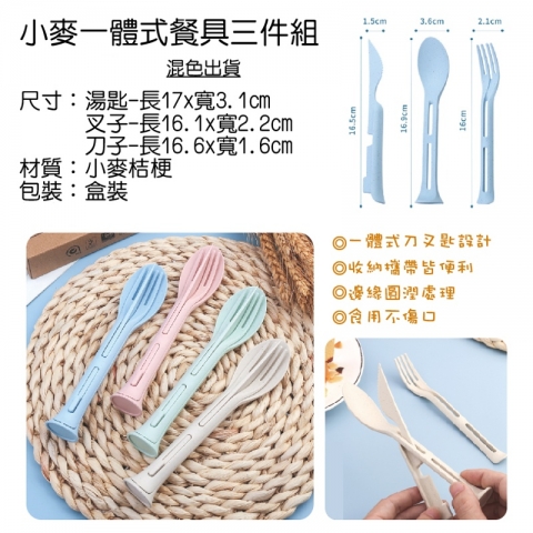 小麥一體式餐具三件組