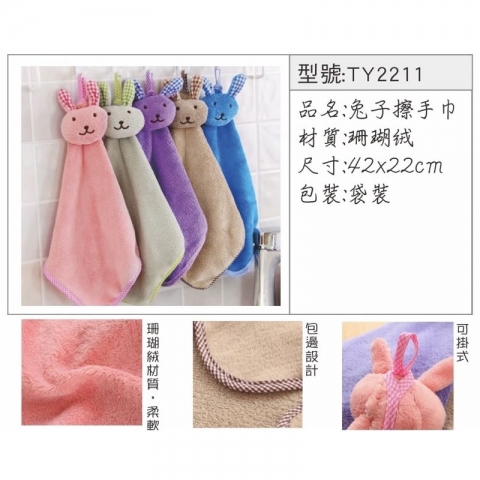 兔子珊瑚絨擦手巾