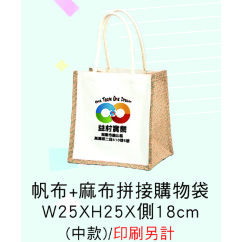 帆布+麻布拼接購物袋