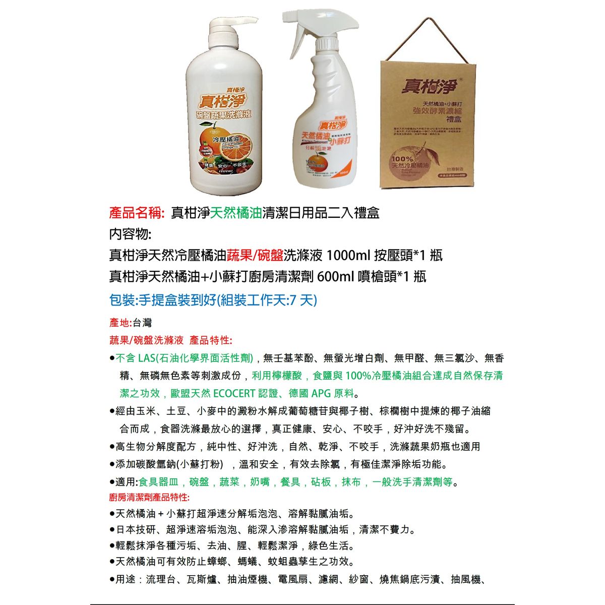 真柑淨天然橘油清潔組