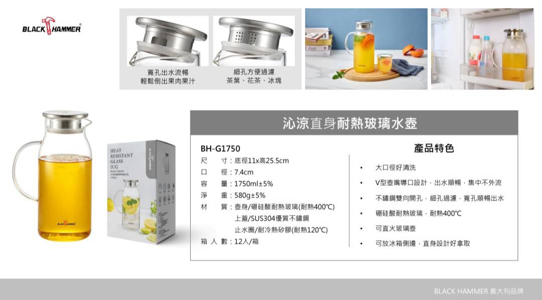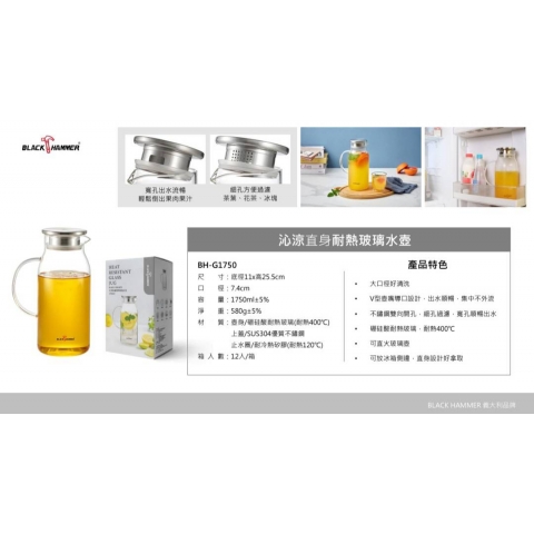 沁涼直身耐熱玻璃水壺