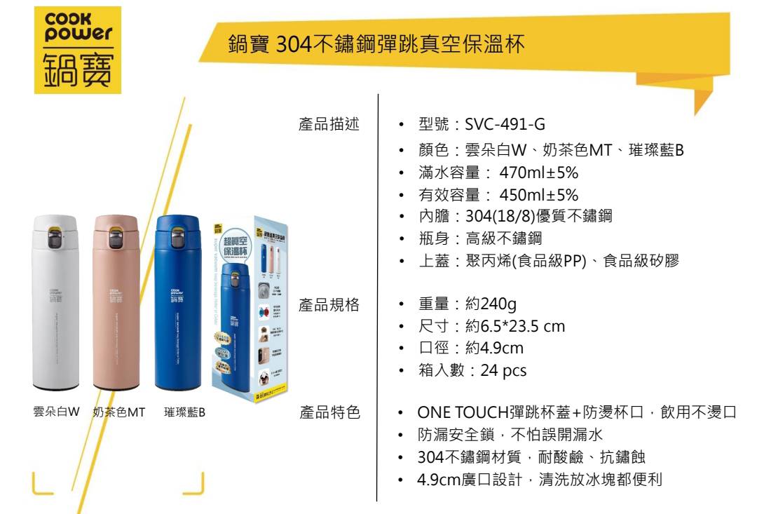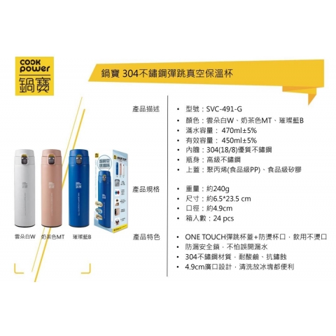 鍋寶304彈跳真空保溫杯