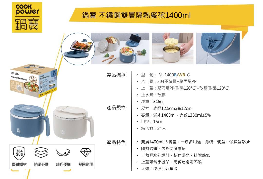 鍋寶不銹鋼隔熱餐碗