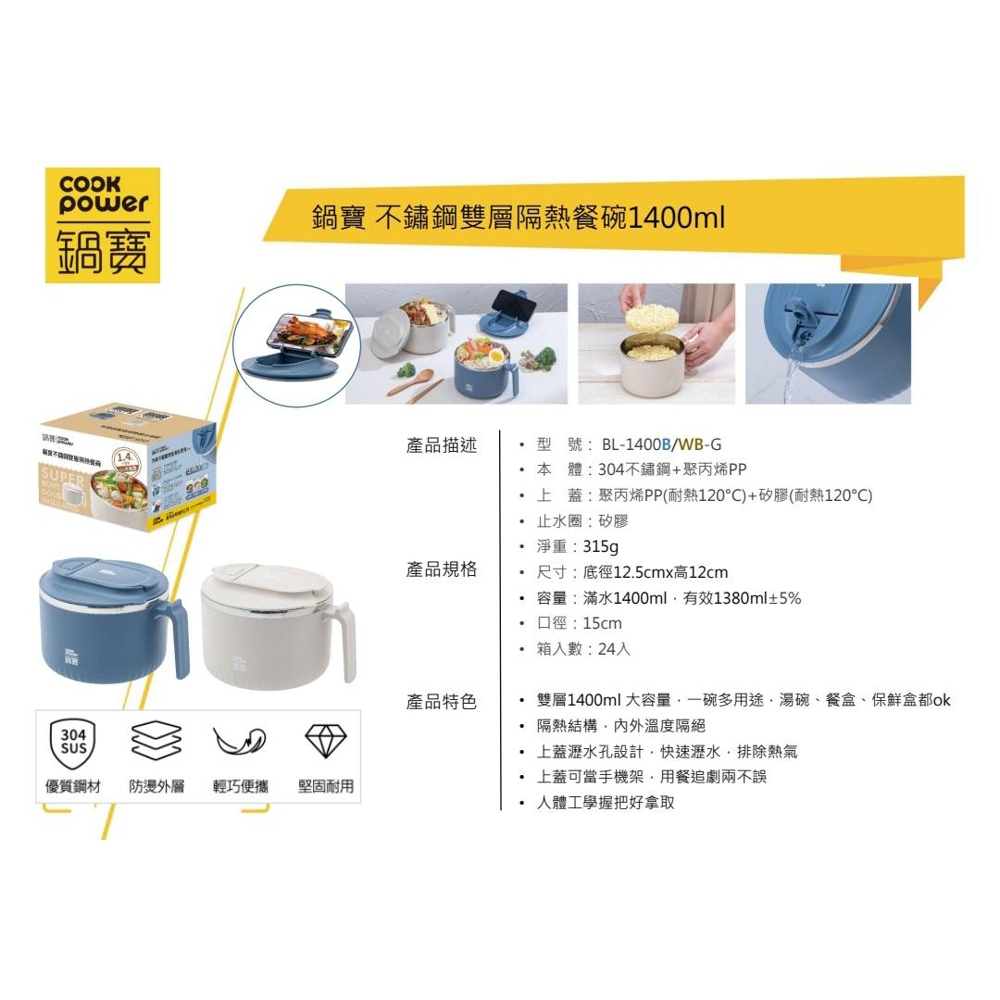 鍋寶雙層隔熱餐碗