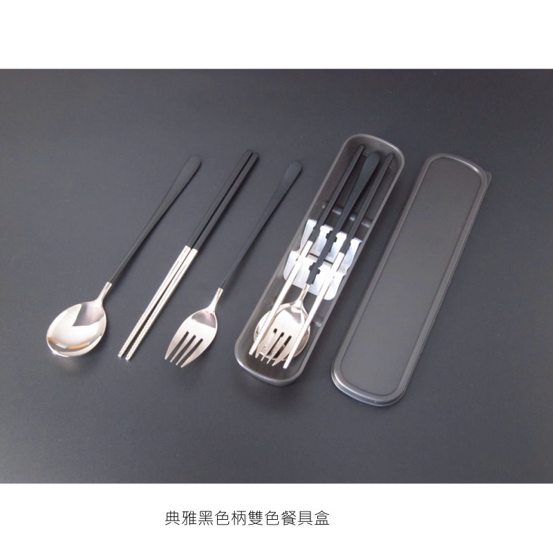 典雅黑色柄雙色餐具組