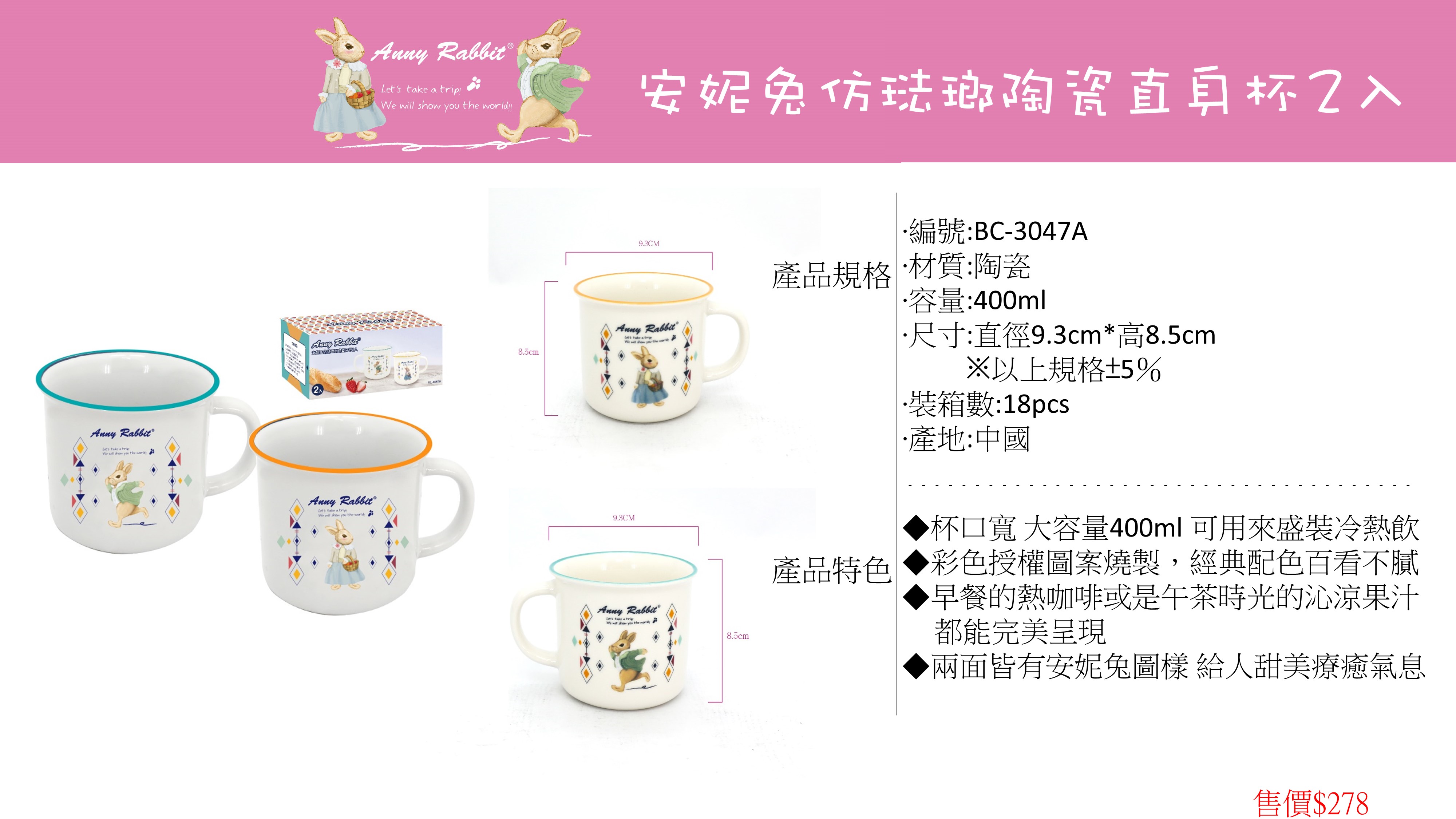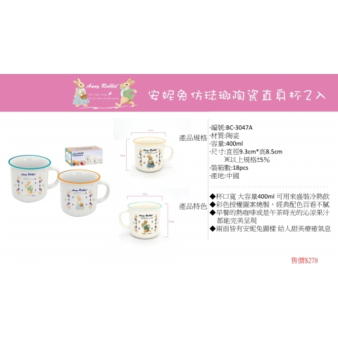 安妮兔仿琺瑯陶瓷杯2入