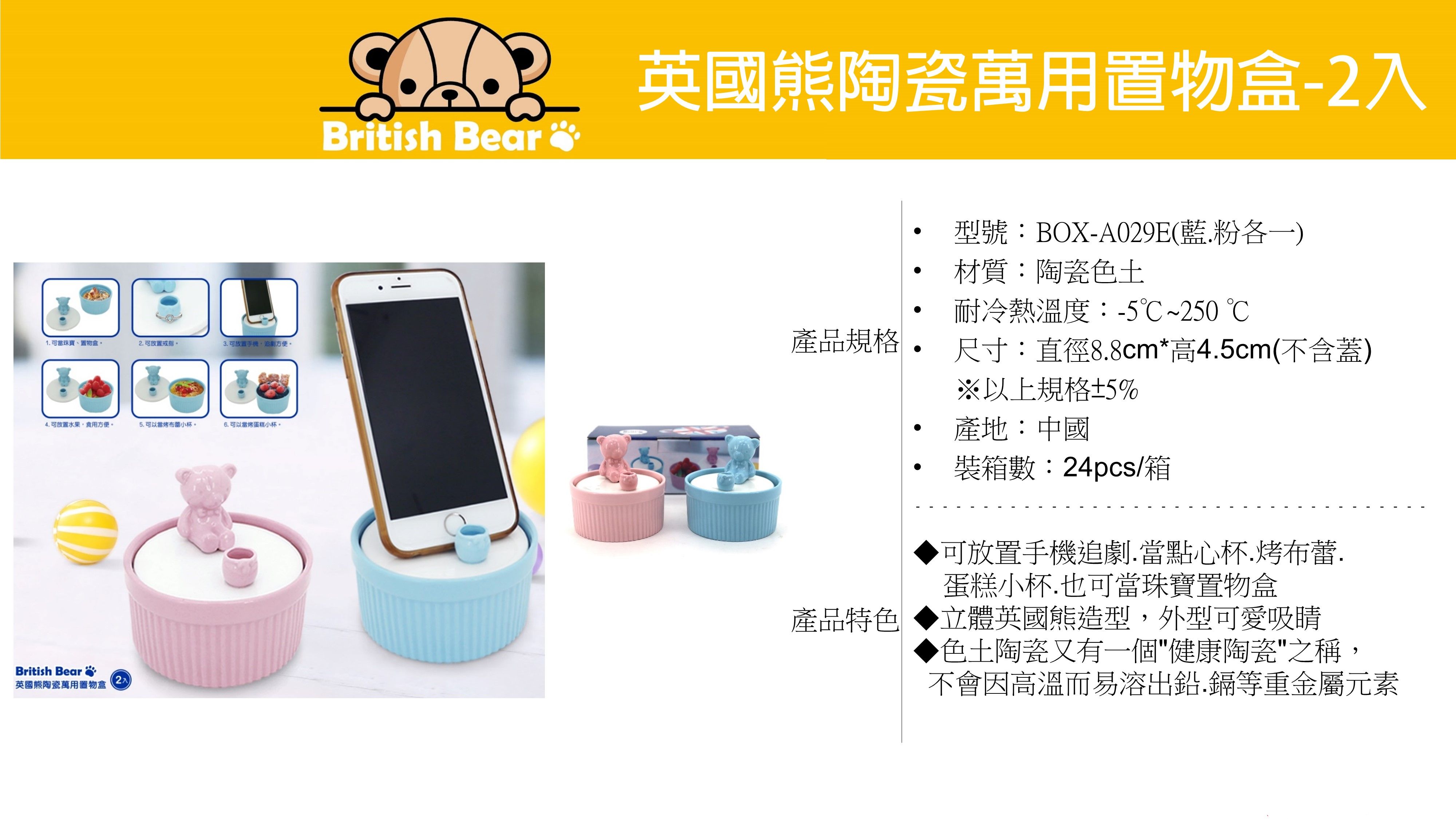 英國熊陶瓷置物盒-2入