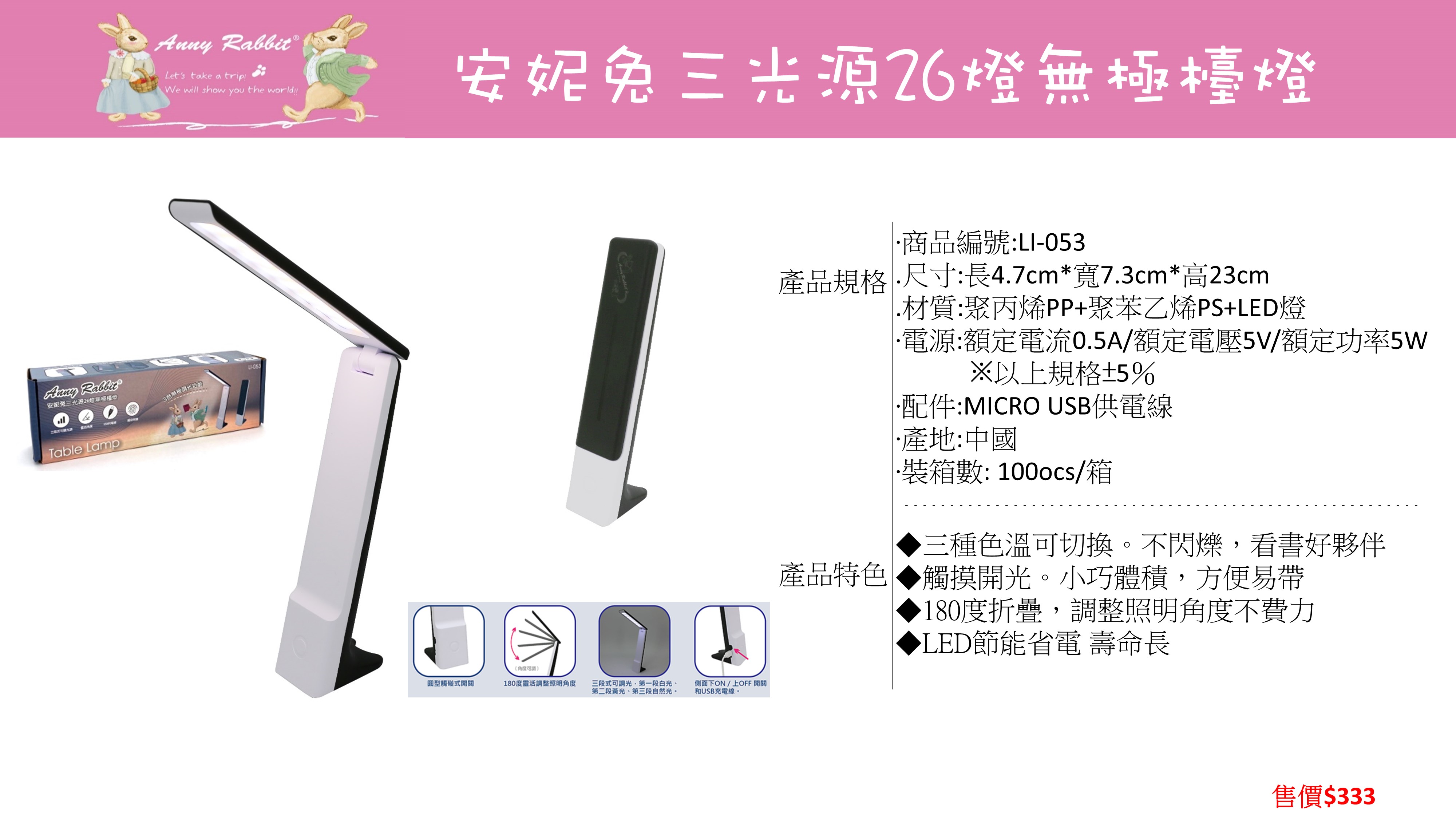 安妮兔三光源26燈檯燈