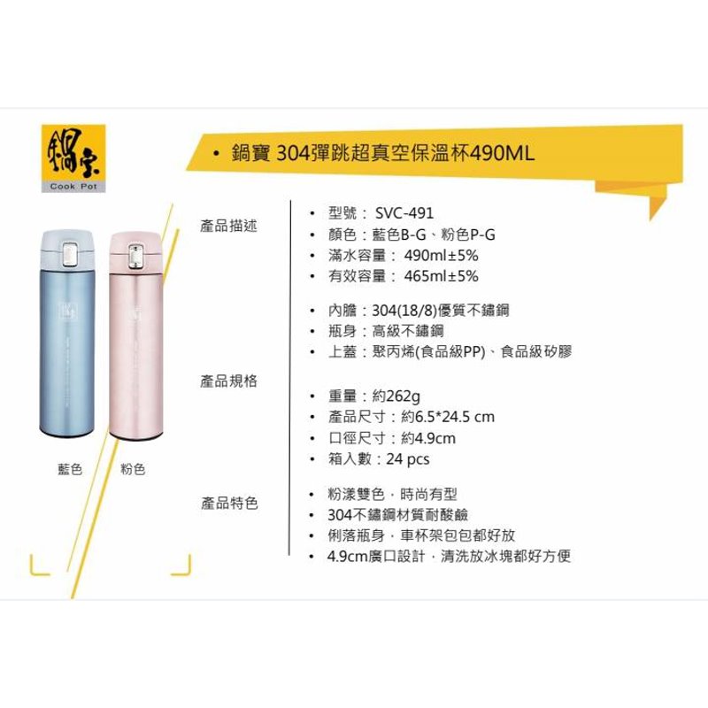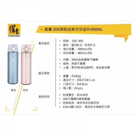 鍋寶 彈跳真空保溫杯-490ml