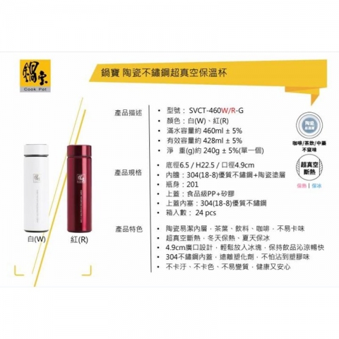 鍋寶 超真空陶瓷保溫杯-460ml
