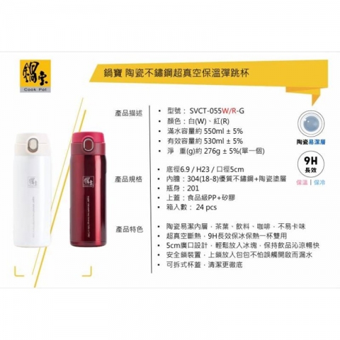 鍋寶 超真空陶瓷保溫杯-550ml