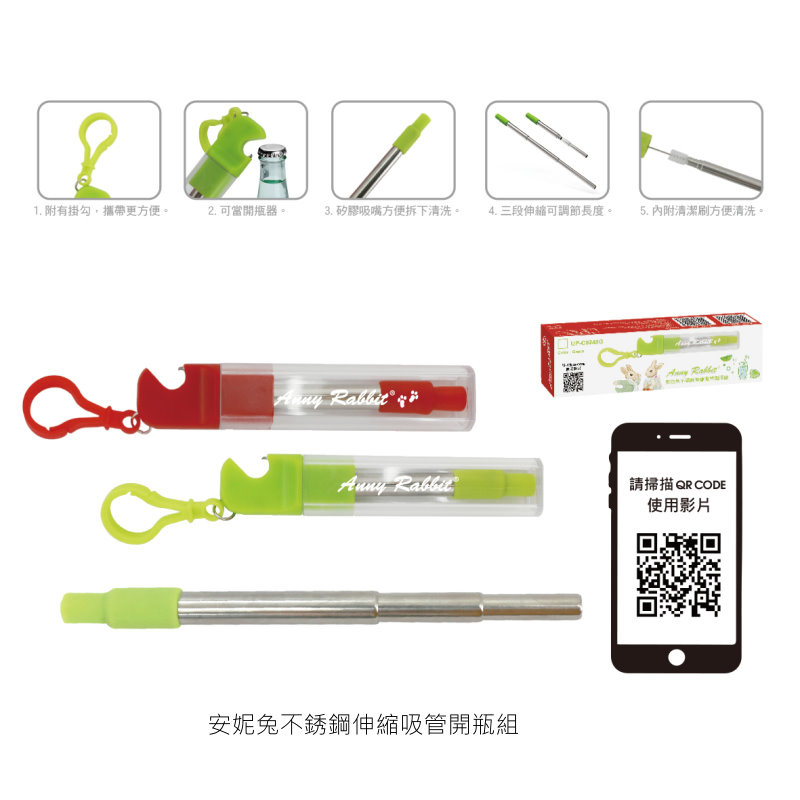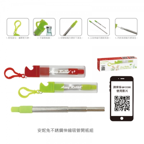 安妮兔不鏽鋼伸縮吸管開瓶組