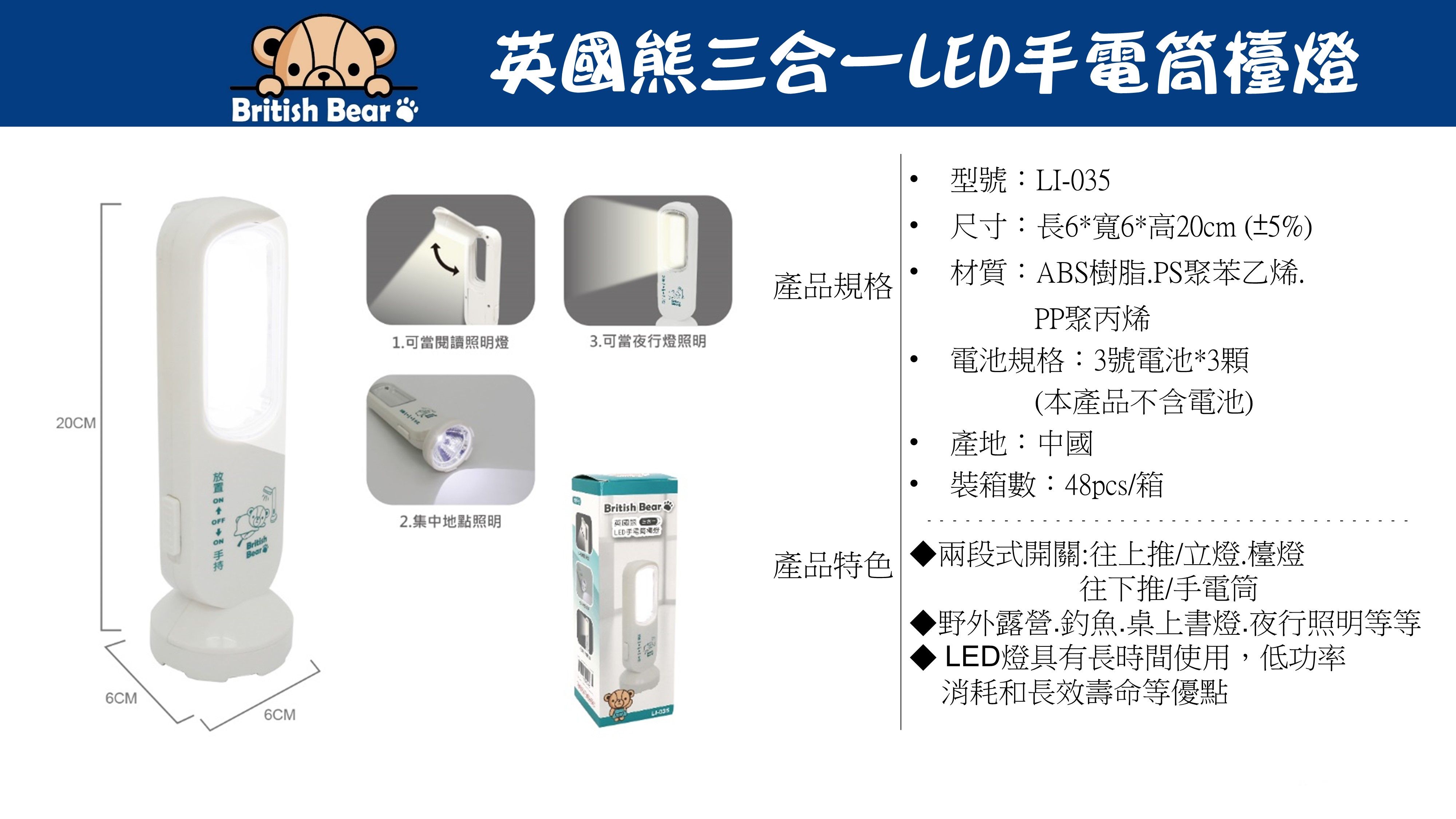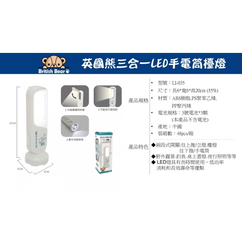 英國熊三合一LED手電筒檯燈