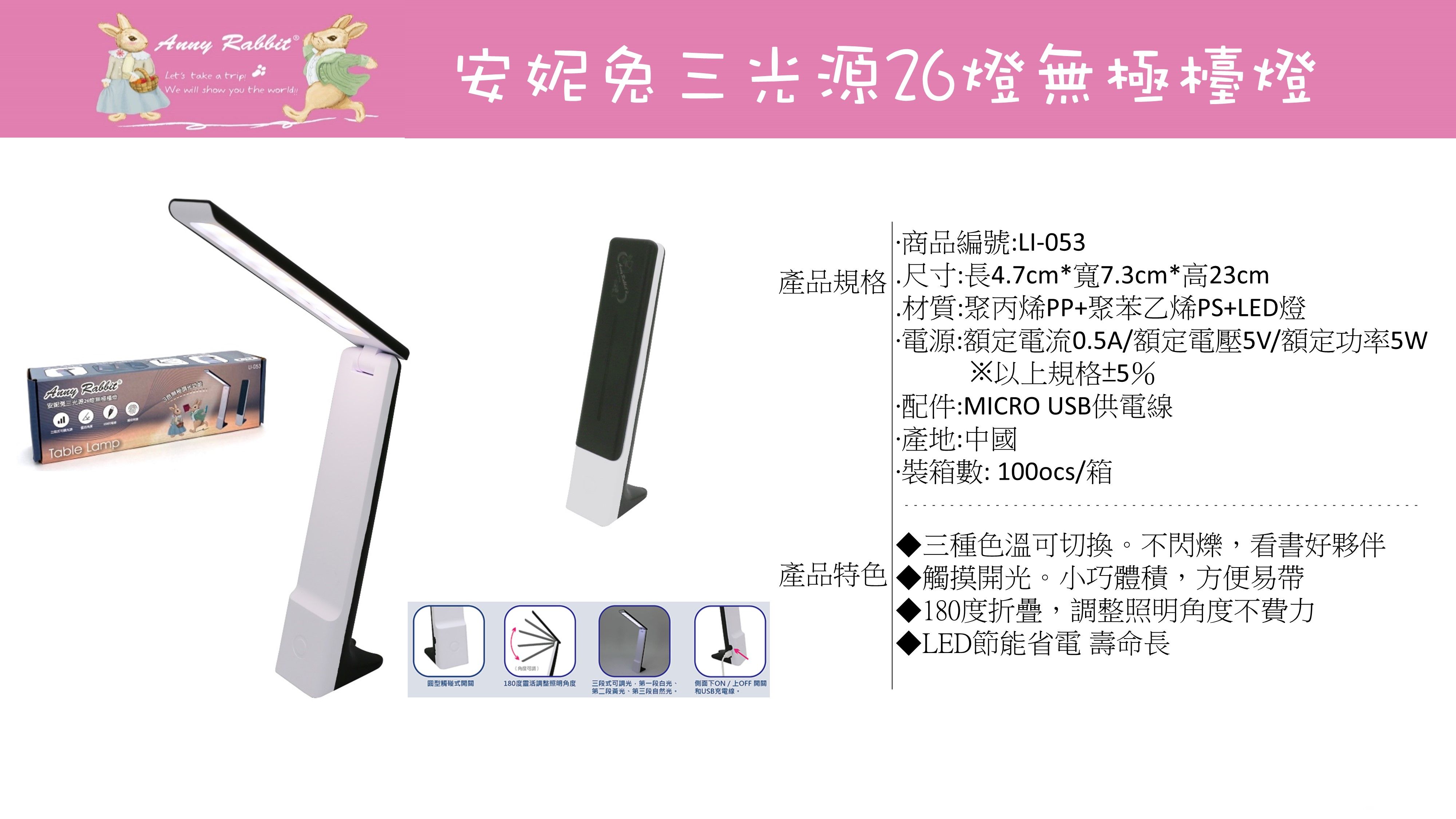 安妮兔三光源無極檯燈