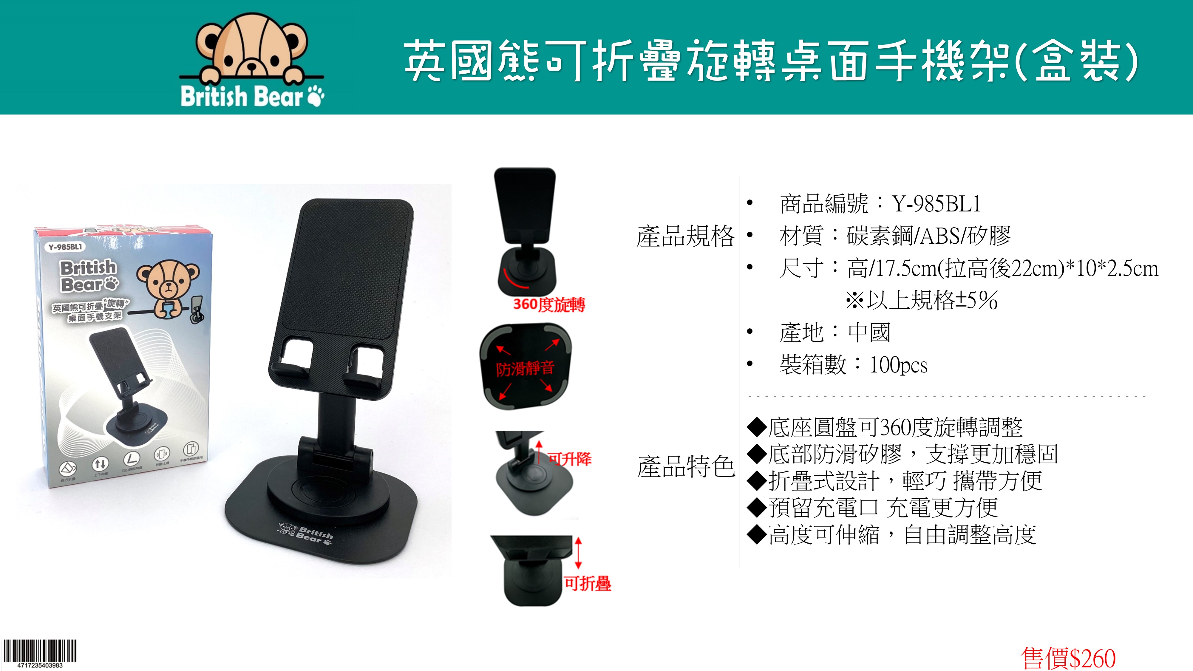 英國熊可折疊旋轉手機架