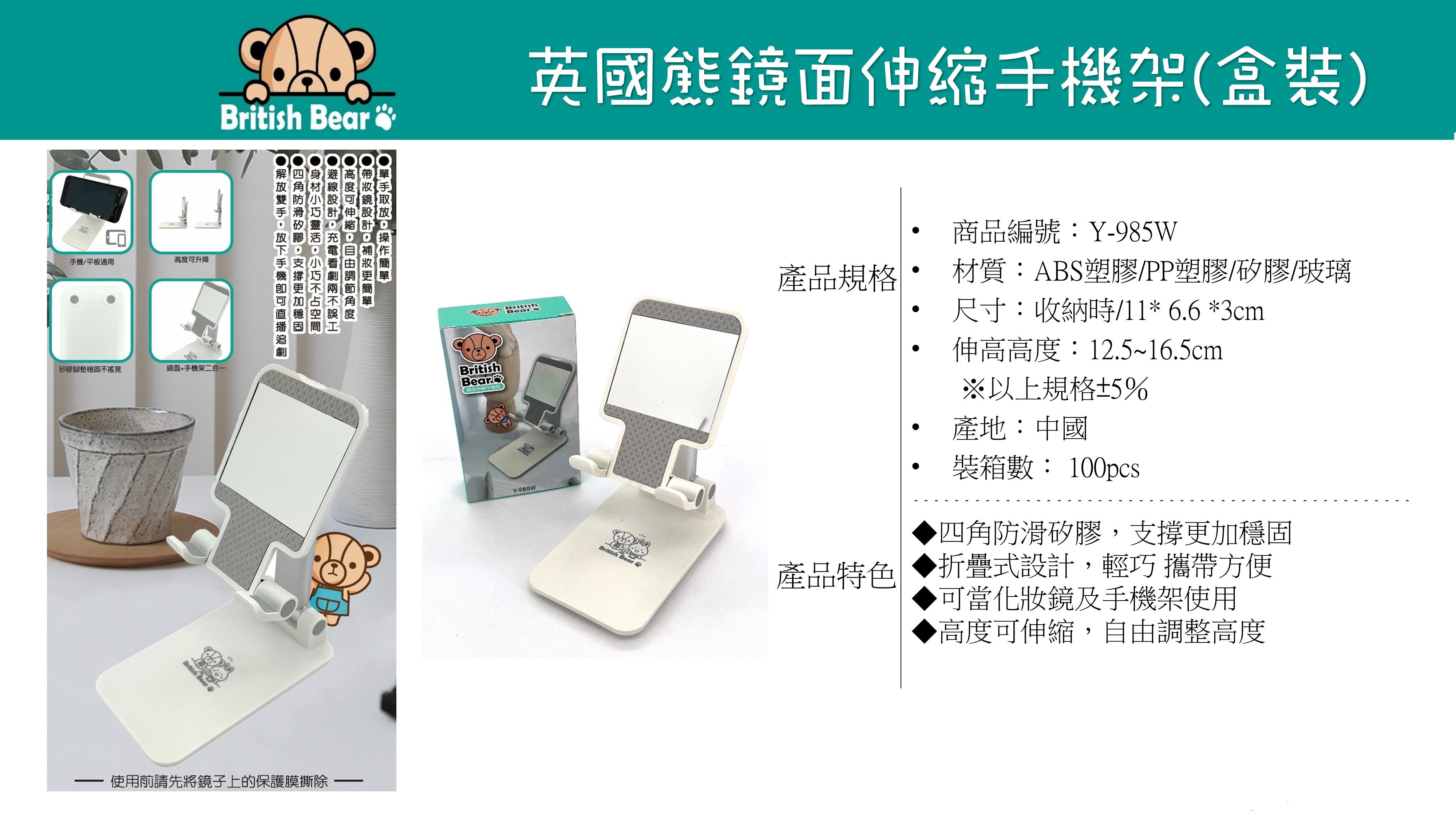 英國熊鏡面伸縮手機架